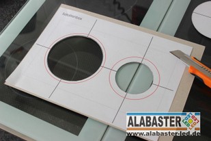 Zuerst fertigte ich die Blenden für die Mittel- , und Hochtöner. Ich wollte sie zwar direkt in den Schrank