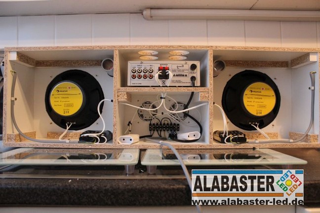 Und dann konnte ich die "BAT-Box" endlich unter den Küchenschrank hängen, die restlichen Kabel einziehen,