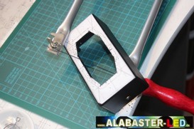 Zuerst übertug ich die Maße der Elektronikblende auf ein Kunststoffgehäuse: