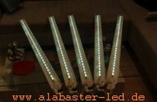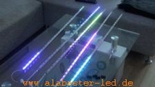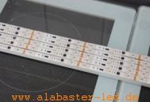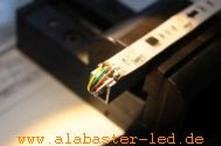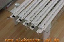 Zuerst hebe ich den LED-Streifen in fünf einzelne Meter-Stücke geschnitten, die ich dann auf ein Aluminium-