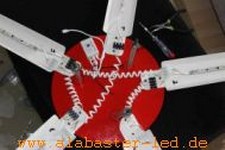 Die Vierkantrohre habe ich mit 2k-Kleber in die Strahlen geklebt.Damit die Strahlen untereinander verbunden werden können, habe ich jeweils für "Eingang" und "Ausgang"