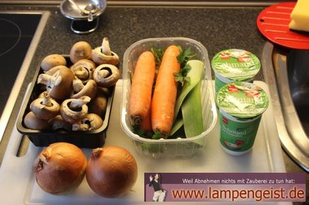 Wärend das Gemüse brät, schneidet ihr die Champignons in Scheiben. Diese sollten aber nicht dicker als ein Zentimeter sein.