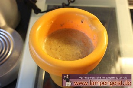 Nun könnt ihr, wenn ihr wollt ca. die Hälfte der Suppe in eine hohes Gefäs geben und mit dem Stabmixer durchmixen.